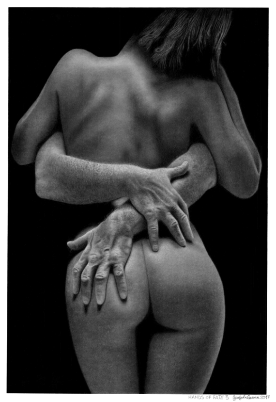 This erotic drawing is the first one of a series that I have intention to do. In past I have already tested myself with this type of drawing and recently returned the wish of trying with the shades and the lights. The title of the drawing has come to me spontaneously but it is also ironic.
