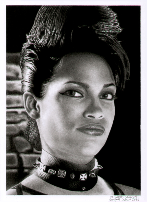 Rosario Dawson (born May 9, 1979) is an American actress, singer, and writer. Dawson was born in New York City, New York. Her mother, Isabel Celeste, is a writer and singer who is of Puerto Rican and Afro-Cuban descent. As a child, Dawson made a brief appearance on Sesame Street. At the age of 15, she was subsequently discovered on her front porch step by photographer Larry Clark and Harmony Korine, where Korine lauded her as being perfect for a part he had written in his screenplay that would become the controversial 1995 film Kids. She went on to star in varied roles, ranging from independent films to big budget blockbusters including Rent, He Got Game, and Men in Black II. She starred as Becky in 2006’s Clerks II, and mentioned in Back to the Well, the making-of documentary, that the donkey show sequence was what made her decide to take the role. She also appeared in the adaptation of the graphic novel Sin City, co-directed by Robert Rodriguez and Frank Miller, portraying Gail, a prostitute-dominatrix. Also in that year, she appeared in a graphically violent scene in the Rob Zombie film The Devil’s Rejects. Though the scene was cut from the final film, it is available in the deleted scenes on the DVD release. In my personal opinion, the role of the prostitute Gail in the movie Sin City is memorable: “Shoot me now or get the hell out of my way.”